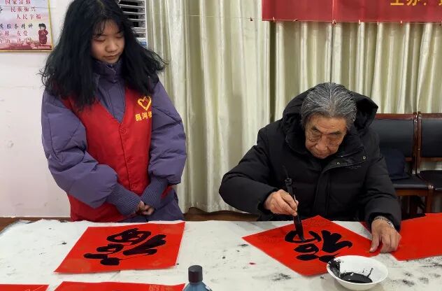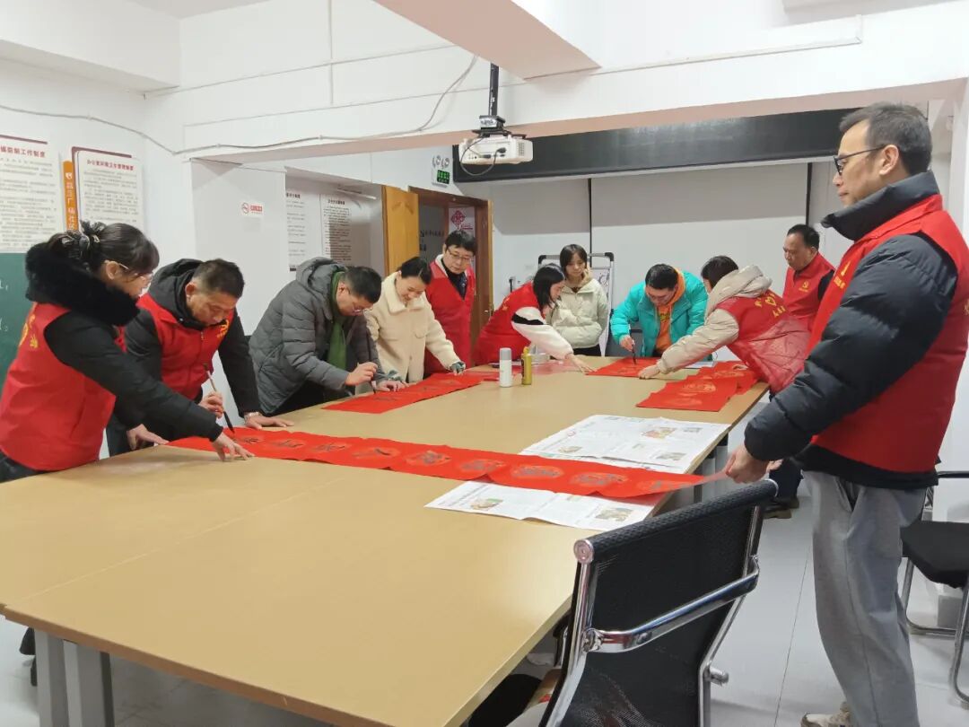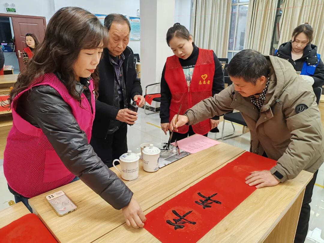 在新春佳节即将来临之际,为丰富社区居民精神文化生活,传承优秀中华传统文化,欢欢喜喜过大年。2月4日上午,新村街道洪家山社区新时代文明实践站组织老体协、计生协组织开展“我们的节日·春节”迎春送祝福进社区活动,为社区居民义务书写对联和福字,将祝福送到千家万户。