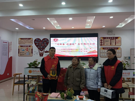 在新春佳节即将来临之际,为了帮助辖区困难群众,让他们体会到社区的关爱,度过一个欢乐、祥和的春节,浙江路社区新时代文明实践站联合江西银行景德镇分行机关党委开展“迎新春 送祝福”走访慰问活动。