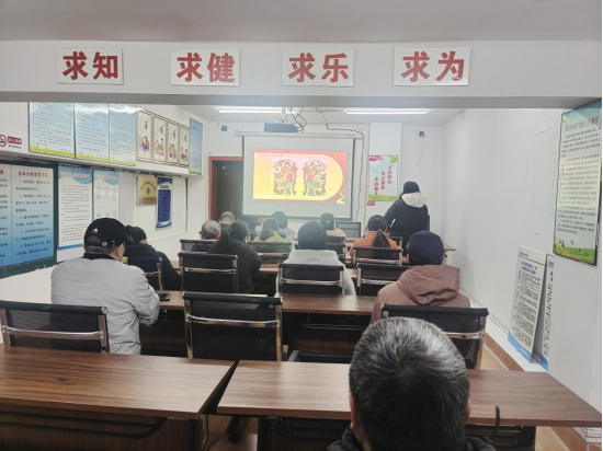 活动中,居民们欢聚一堂,共同欣赏社区制作的幻灯片。每张年画都色彩斑斓,鲜艳浓烈,具有很强的观赏性和感染力,深受在场居民的喜爱。工作人员也都笑眯眯地祝福居民们龙年吉祥、新春快乐,现场充满欢乐热闹的气氛。