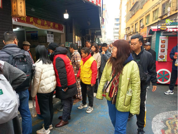 就地坚守,“红蓝黄”守护一方平安。江西景德镇珠山区抚州弄作为景德镇的特色“网红”美食打卡点,深受游客关注喜爱。为更好地给广大游客提供更好的游玩环境,春节期间,志愿者们坚守抚州弄,为游客们保驾护航,提供一个干净、安全的游玩环境,优化营商环境。春节期间,抚州弄到处都排满了长龙,游客爆满!在抚州弄,可以看见这样一条队伍——身穿红马甲的党员志愿者、身穿黄马甲的街区管理员、身穿蓝马甲的网格员,为游客介绍活动规则、指引游客,并引导骑电动车的行人有序停放车辆,提醒游客注意安全,并重点检查商家的食品安全与消防安全工作,加强抚州弄的安全巡查,确保春节期间抚州弄平稳、有序、安全运行。为切实消除安全隐患,营造安定祥和的节日氛围,助力优化营商环境。连日来,梦园社区新时代文明实践站始终坚持春节我在岗,守护安全“不打烊”,组织安排社区工作人员每天24小时在岗,确保辖区春节期间安全生产秩序平稳。社区工作人员对辖区内的环境卫生、自建房、梭式窑、地质灾害点、秸秆焚烧开展巡查,并在商铺、饭店等人流密集场所,给居民宣传讲解平安过节知识,检查提醒他们在日常生活中要多注意用火、用气、用电安全。同时,工作人员也对街面、住宅小区等地进行不间断巡逻,第一时间通知玉禾田工人清理垃圾,为群众欢度新春佳节营造干净整洁的环境。下一步,梦园社区将继续坚持以保障人民群众利益为出发点和落脚点,牢固树立底线思维,努力强化责任担当,当好群众“守夜人”,守护好“万家灯火”。