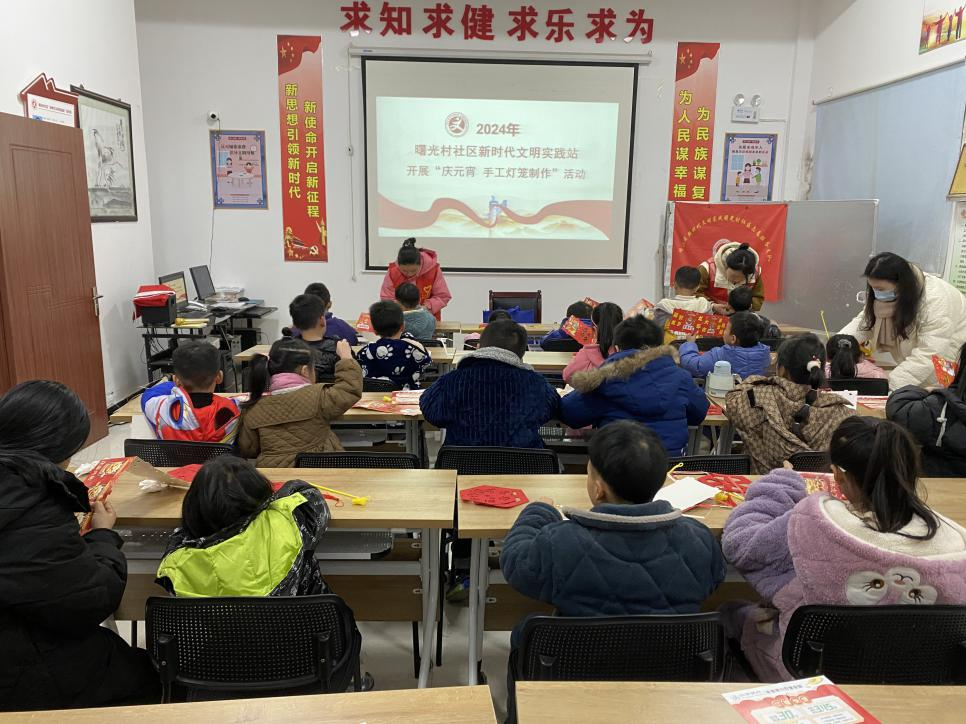 社区干部早早地把红彤彤的灯笼高高挂起,社区大厅内比往日多了一份节日喜庆氛围,提前准备好的谜语内容形式多样,妙趣横生,涵盖了传统文化、风俗习惯、成语故事等,居民们热情高涨,积极参与、踊跃竞猜。看!他们全神贯注盯着谜面,时而挠头,时而喃喃自语,确定答案后便笑逐颜开,现场一片欢声笑语,笑容洋溢在每个人的脸上。另一边社区工作人员忙活着给大家煮汤圆,随后一碗碗热气腾腾的汤圆送到在场的老人和居民手中,同时,社区干部也为不便出门的独居空巢老人送去节日问候和爱心汤圆,用小小的汤圆传递浓浓的人情味。此次活动增进了邻里之间的感情,让更多居民参与并了解传统文化习俗内涵。今后,景华社区将不断增强基层党组织凝聚力和号召力,开展更多内容新颖、形式多样的传统文化活动,满足广大居民群众的精神文化需求。为营造喜庆的节日氛围,让辖区孩子们感受传统文化的魅力,提高创作能力和动手能力,2月22日,曙光村社区新时代文明实践站开展了“庆元宵 手工灯笼制作”活动。