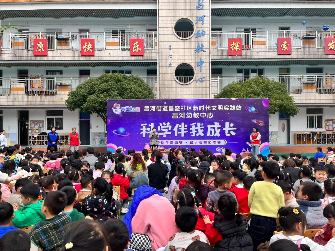 每个孩子的心中都有很多奇思妙想,为了让幼儿开阔视野、感受科技的神奇与力量,引导幼儿热爱科学、探究科学、崇尚科学,3月14日,昌盛社区新时代文明实践站联合市级科普教育基地“坚果科学实验室”走进昌河幼教中心,开展以“科学伴我成长”为主题的科普活动,和小朋友们一起探索科学的奥妙!