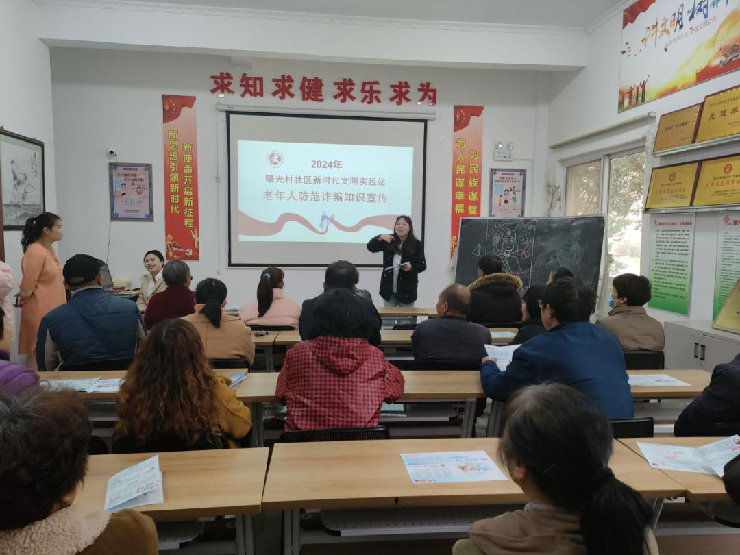 为预防和减少诈骗案件的发生,进一步增强老年人防诈骗意识,加大防范宣传力度,3月14日,曙光村社区组织老年分校、党员志愿者、计生协会、辖区老年人在新时代文明实践站开展的老年人“防范诈骗知识讲座”活动。