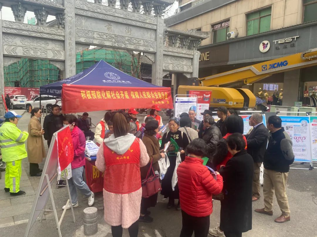 为进一步提升辖区平安建设工作整体水平,积极营造平安建设浓厚氛围,充分调动群众的参与热情,使平安建设稳步推进,3月14日,珠山街道平安办联合司法所、各社区在龙珠阁社区古街口开展平安建设宣传月活动。