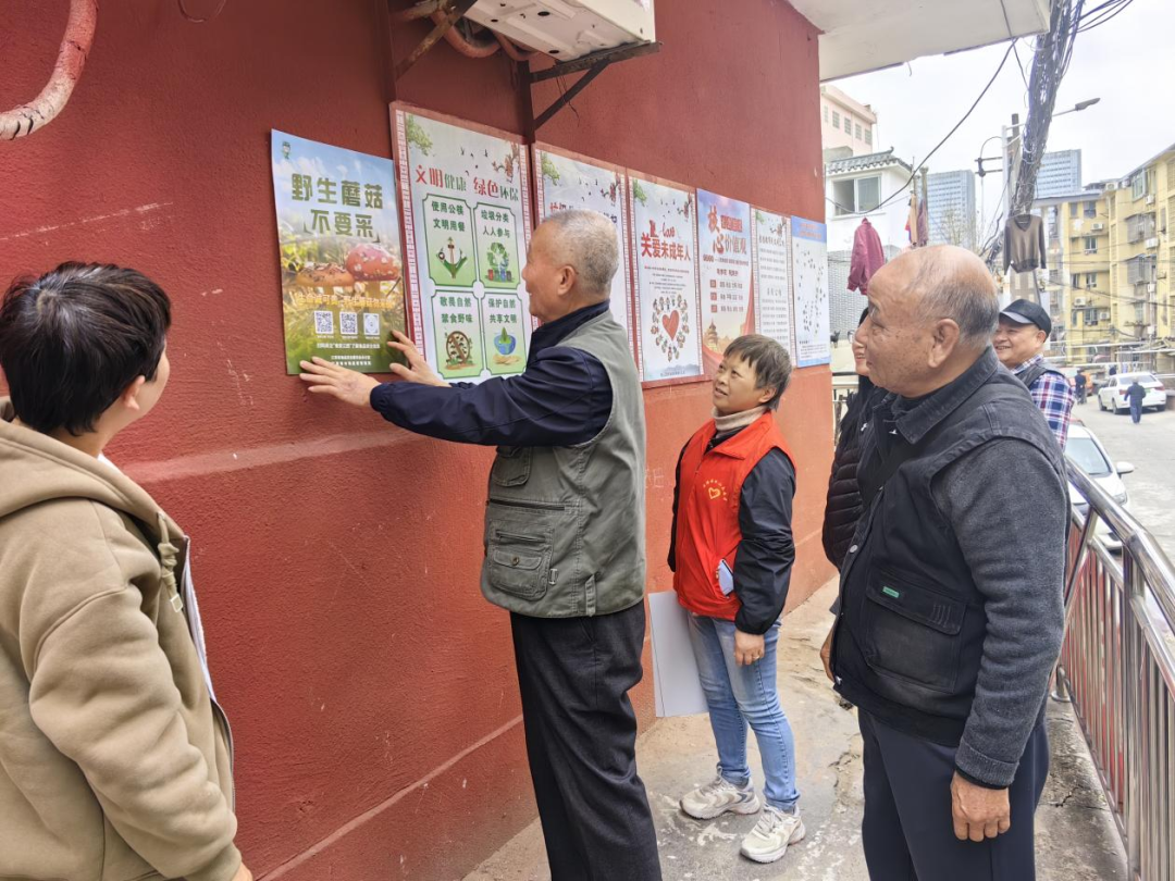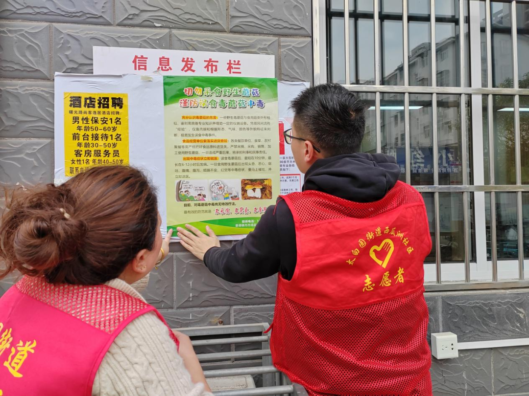 随后,志愿者在辖区内张贴宣传画,现场向居民讲解毒蘑菇的种类,提醒居民勿采、勿食、不买、不卖不明品种的野生毒蘑菇。