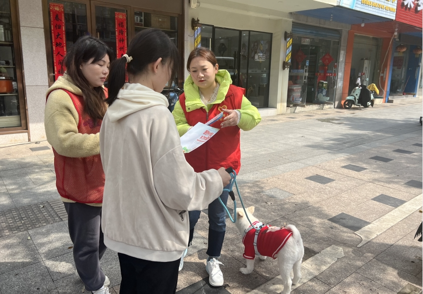活动中,志愿者们向商铺居民和养犬者发放《文明养犬从我做起》宣传资料,现场宣传和讲解文明养犬的相关知识及注意事项,告知居民出门遛狗时要栓绳,应主动避让儿童、老人、孕妇等特殊群体,及时清理狗粪便,共同维护环境卫生。