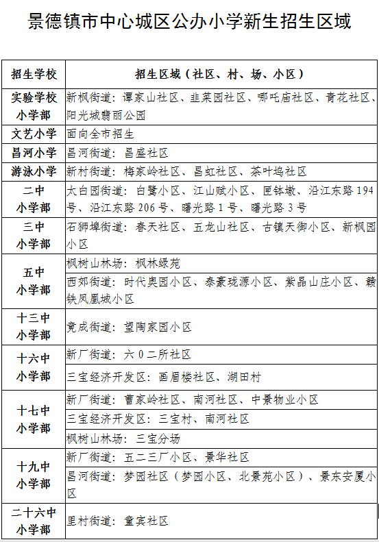 - 景德镇市中心城区公办小学新生招生区域
