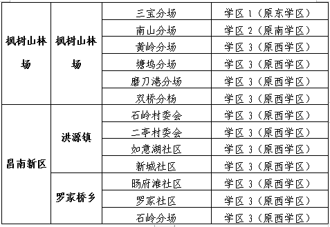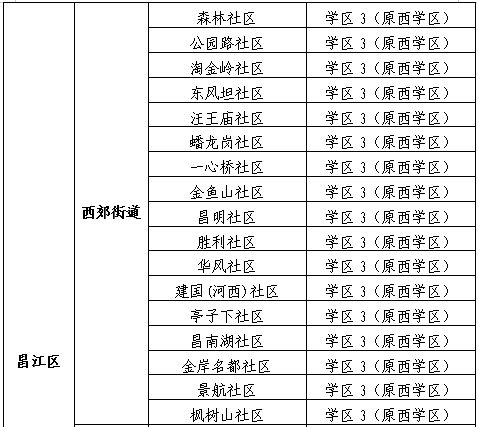学区3(原西学区)学校:三中、外国语学校、五中、七中、体育中学、实验学校、昌江实验学校、昌江区白鹭学校、五小初中部、十二中(昌南学校);