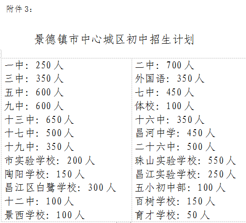 3.景德镇市中心城区初中招生计划