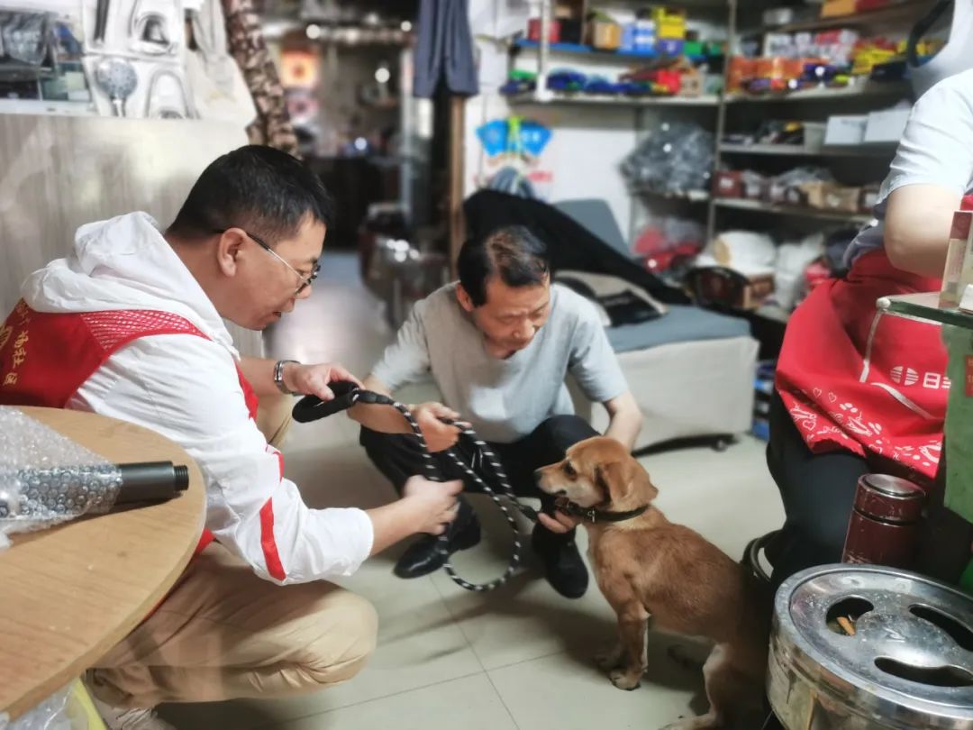 活动中,志愿者向小区居民发放了《社区文明养犬倡议书》等宣传材料,对未牵狗绳的居民发放狗绳,劝导居民遛狗拴绳、清理粪便等,促使辖区居民养成自我约束、自我参与的文明养犬观念,并向居民群众介绍了犬类疫苗注射等文明养犬规范,对不文明养犬行为说“不”。