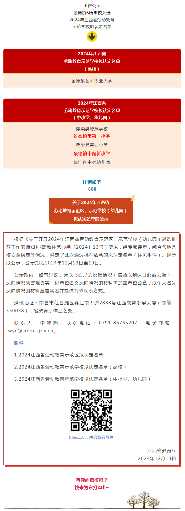 景德镇6所学校入选2024年江西省劳动教育示范学校拟认定名单