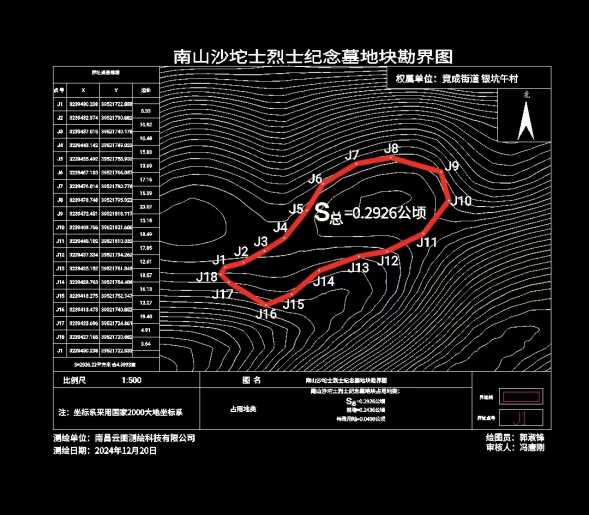 按照南山(沙陀山)革命烈士墓测定界图为基准线,保护范围为东侧外延1米,以树木为界;西侧外延1米、以树木为界;南侧外延1米,以树木为界;北侧外延1米,以树木为界,共2926平方米。(后附图)。