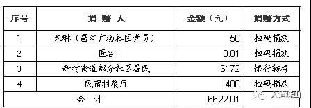 3月23日至4月6 日通过银行账户及扫码捐款方式接收新冠肺炎疫情防控专项捐款,累计接收捐赠款6622.01元,现公示如下: