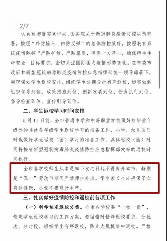 市教育局发布通知!即日起,全市各学校师生不得离开本市