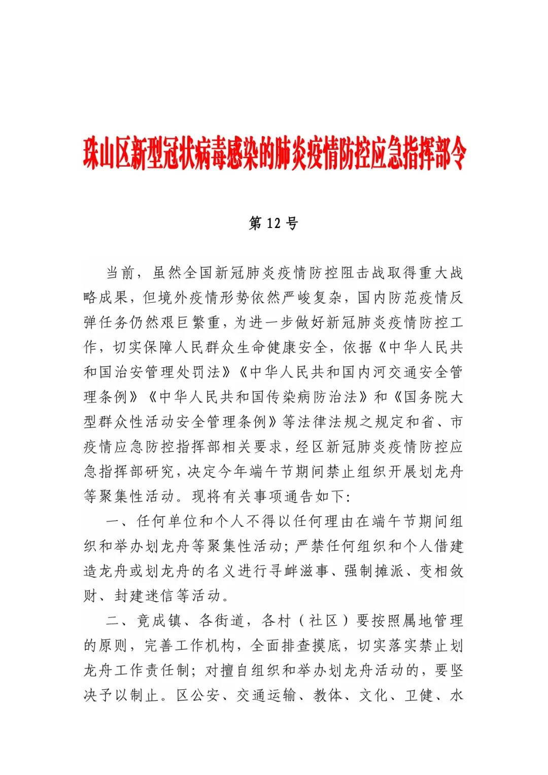 珠山区新型冠状病毒感染的肺炎疫情防控应急指挥部令(第12号)