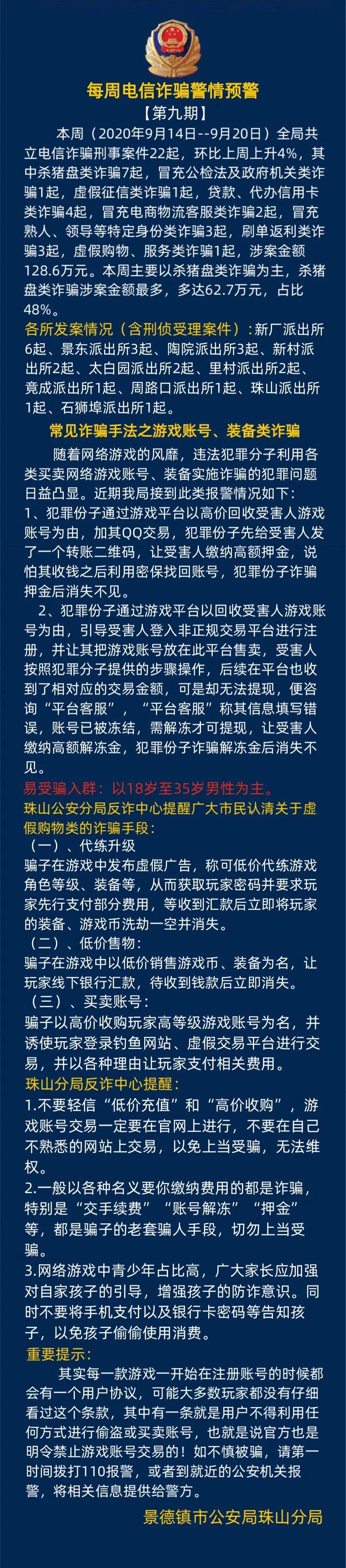 珠山公安反诈防范:“游戏账号”诈骗套路多,“氪金”需谨慎
