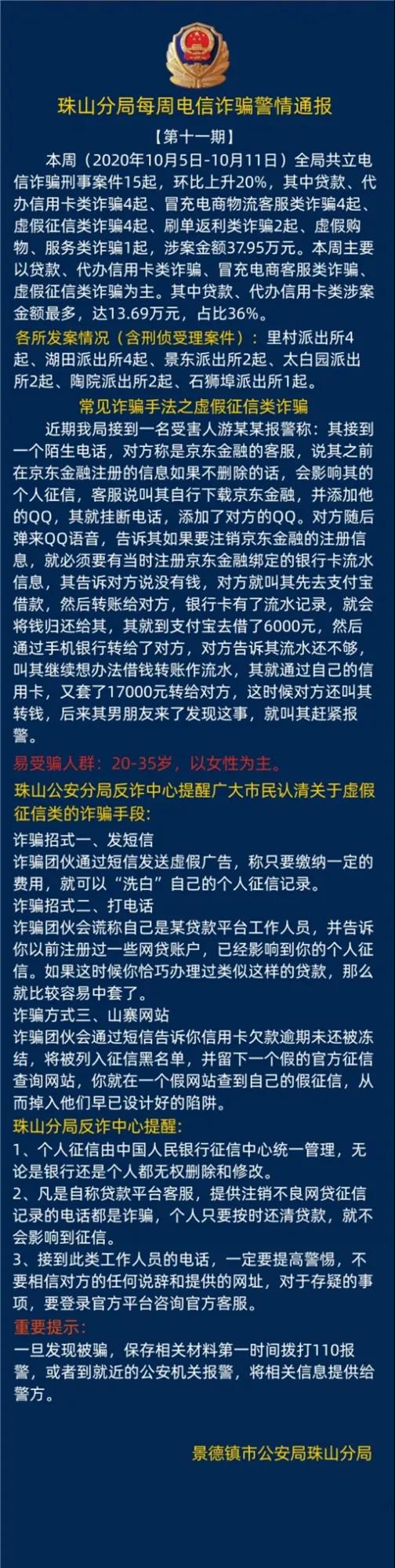 珠山公安反诈防范:以“洗白”征信为由的诈骗