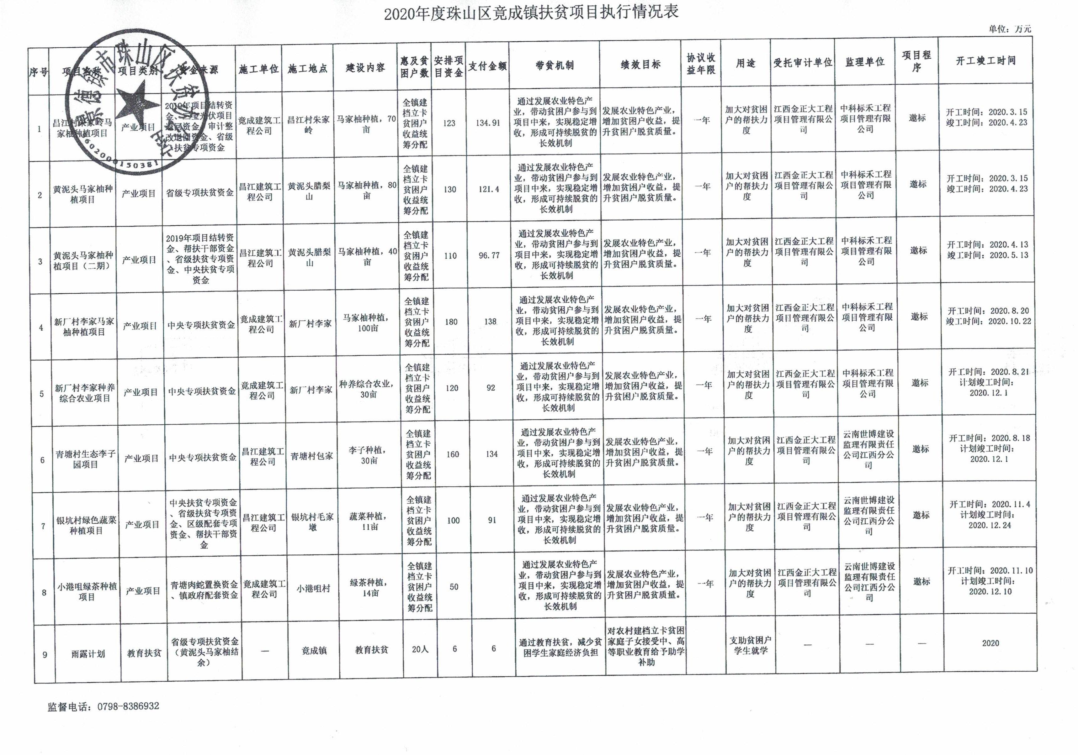 2020年度珠山区竟成镇扶贫项目执行情况表