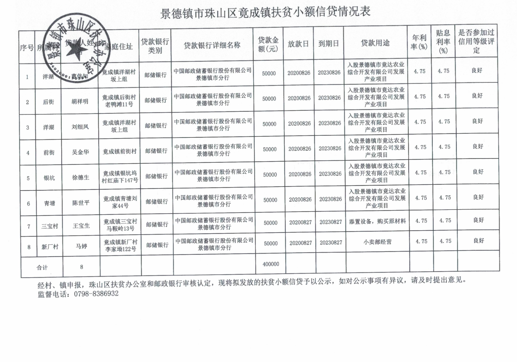 2020珠山区竟成镇扶贫小额信贷贷款情况表