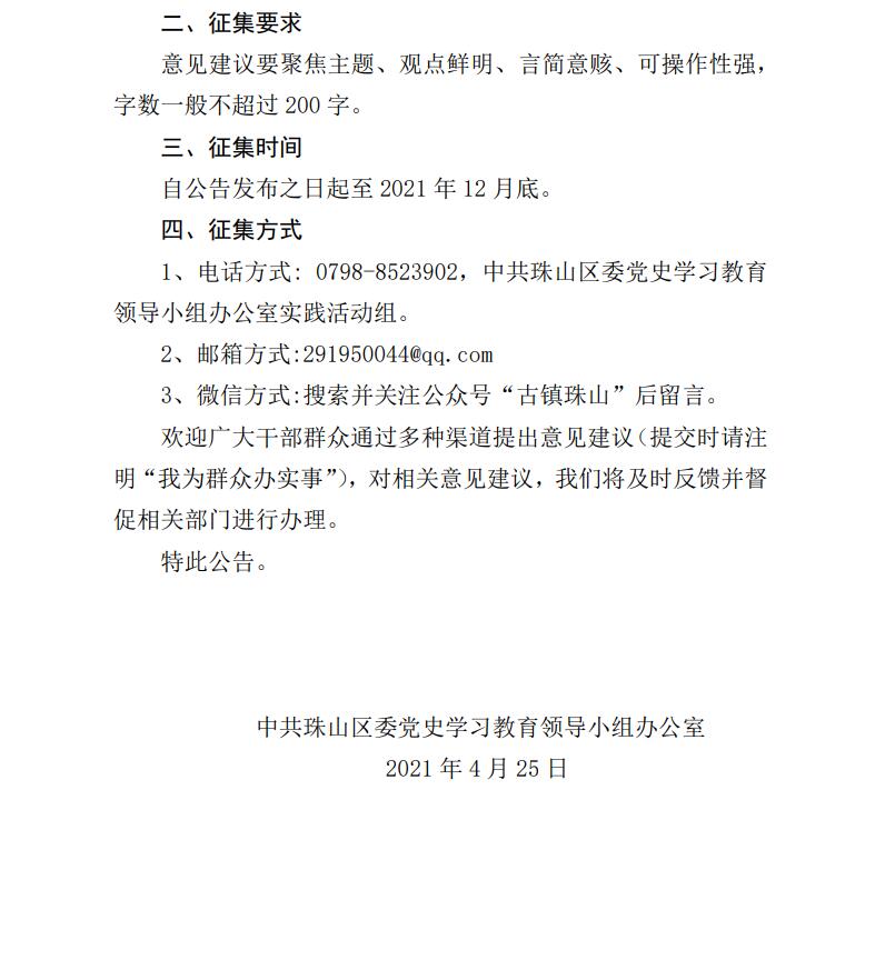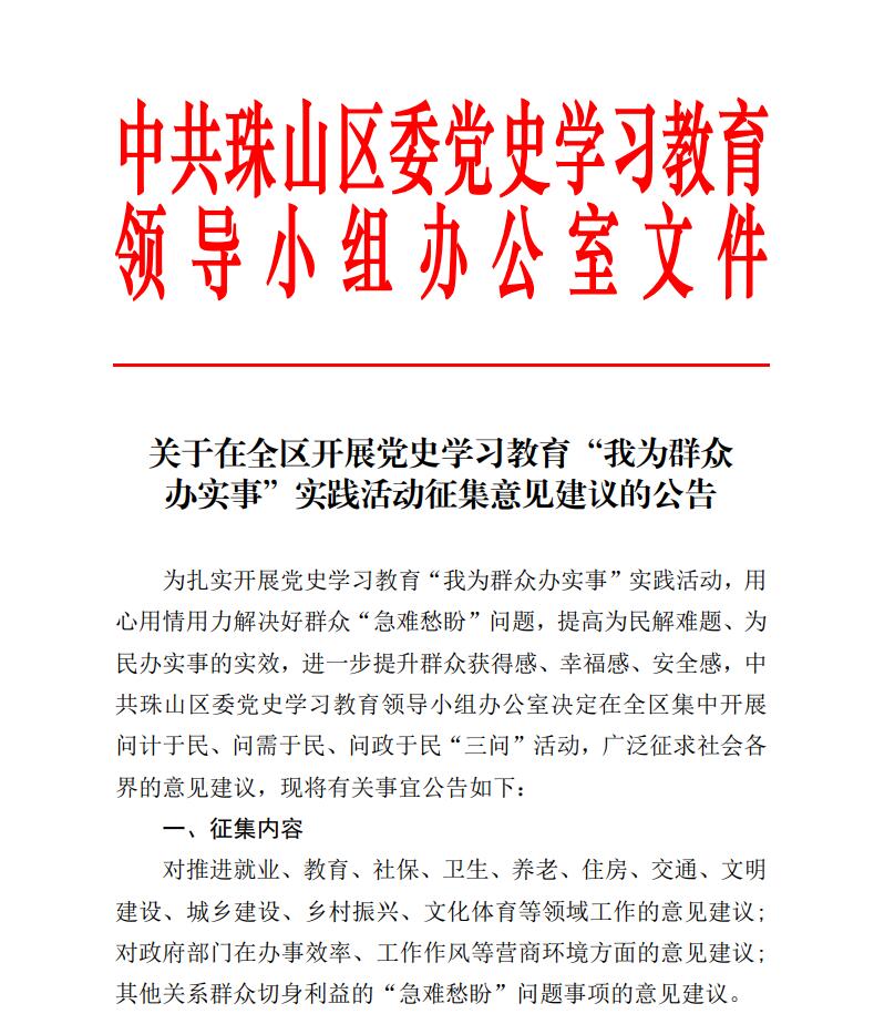 关于在全区开展党史学习教育“我为群众办实事”实践活动征集意见建议的公告