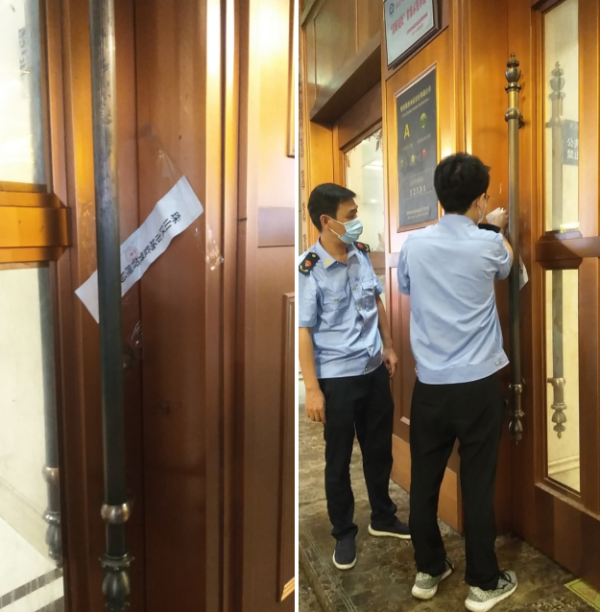执法人员在浙江路皇冠广场附近发现一家大型酒店违规举办酒席,现场检查发现该店内一宴会厅有14桌满座,宴会厅正常接纳量为18桌。此举严重违反《珠山区新型冠状病毒感染的肺炎疫情防控应急指挥部通告(第1号)》“婚宴、寿宴、升学宴等宴请一律暂缓”的要求。执法人员当即要求酒店疏散用餐人员,对其经营场所进行查封,并下发《责令整改通知书》限期停业整改。