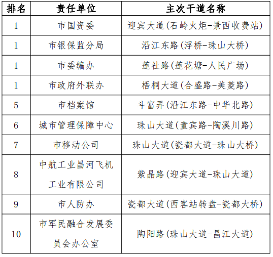 三、主次干道责任单位