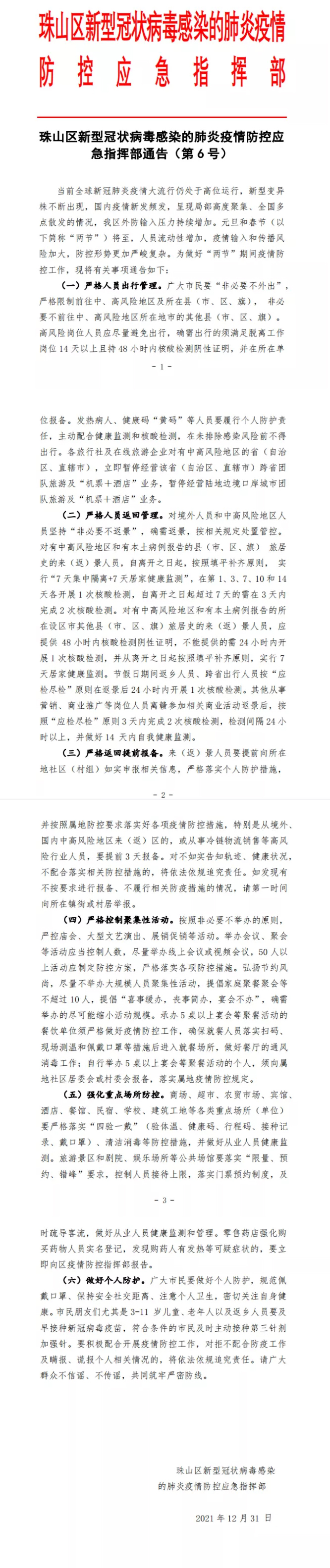 【疫情防控】珠山区新型冠状病毒感染的肺炎疫情防控应急指挥部通告(第6号)