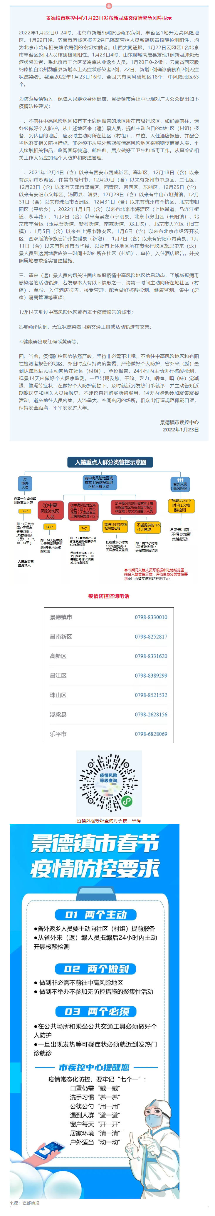 景德镇市疾控中心1月23日发布新冠肺炎疫情紧急风险提示