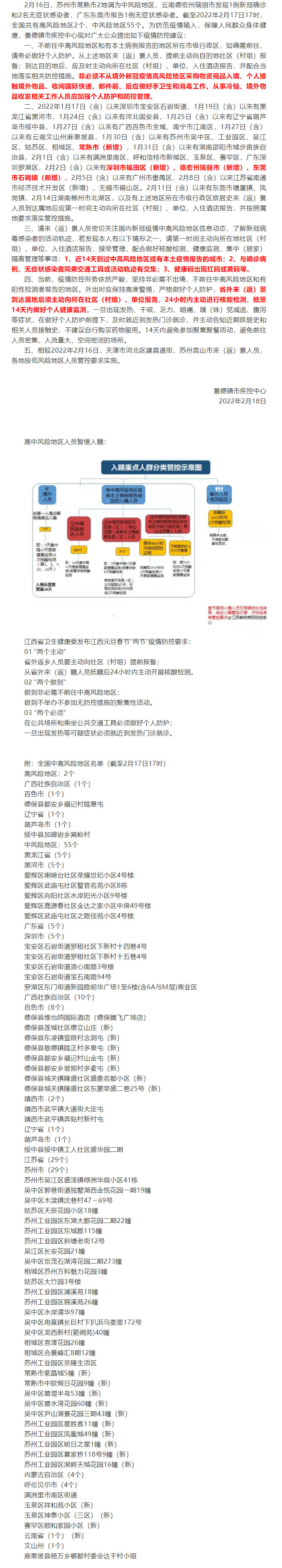 景德镇市疾控中心2月18日发布新冠肺炎疫情紧急风险提示