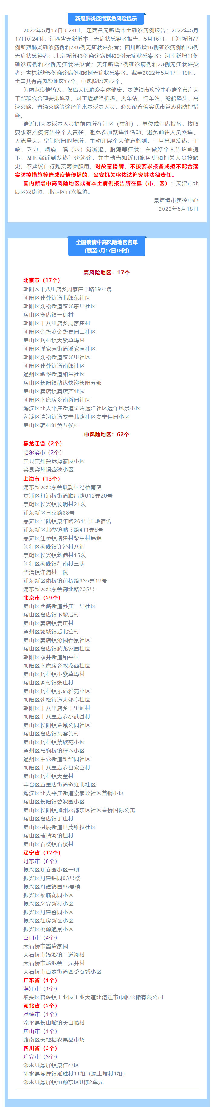 景德镇市疾控中心5月18日发布新冠肺炎疫情紧急风险提示