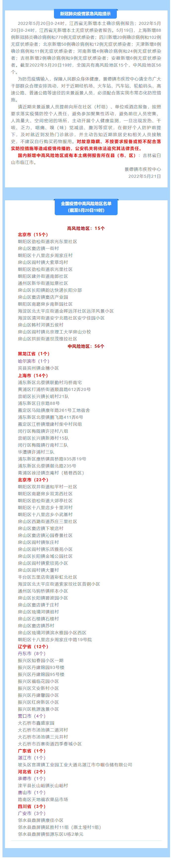 景德镇市疾控中心5月21日发布新冠肺炎疫情紧急风险提示