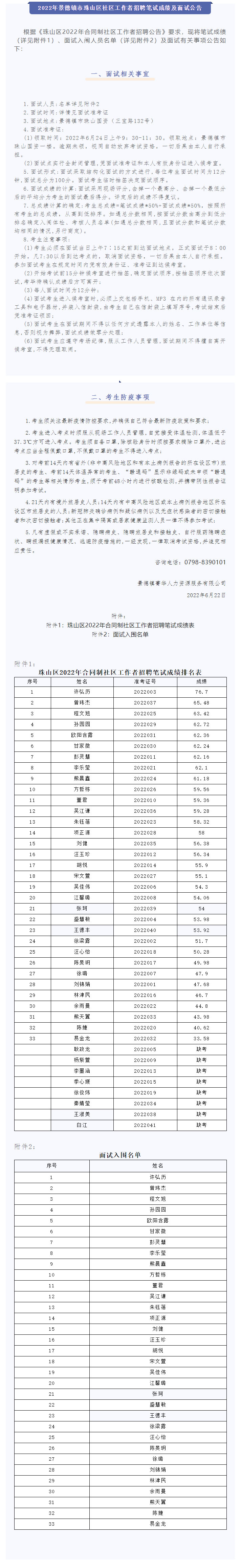2022年景德镇市珠山区社区工作者招聘笔试成绩及面试公告