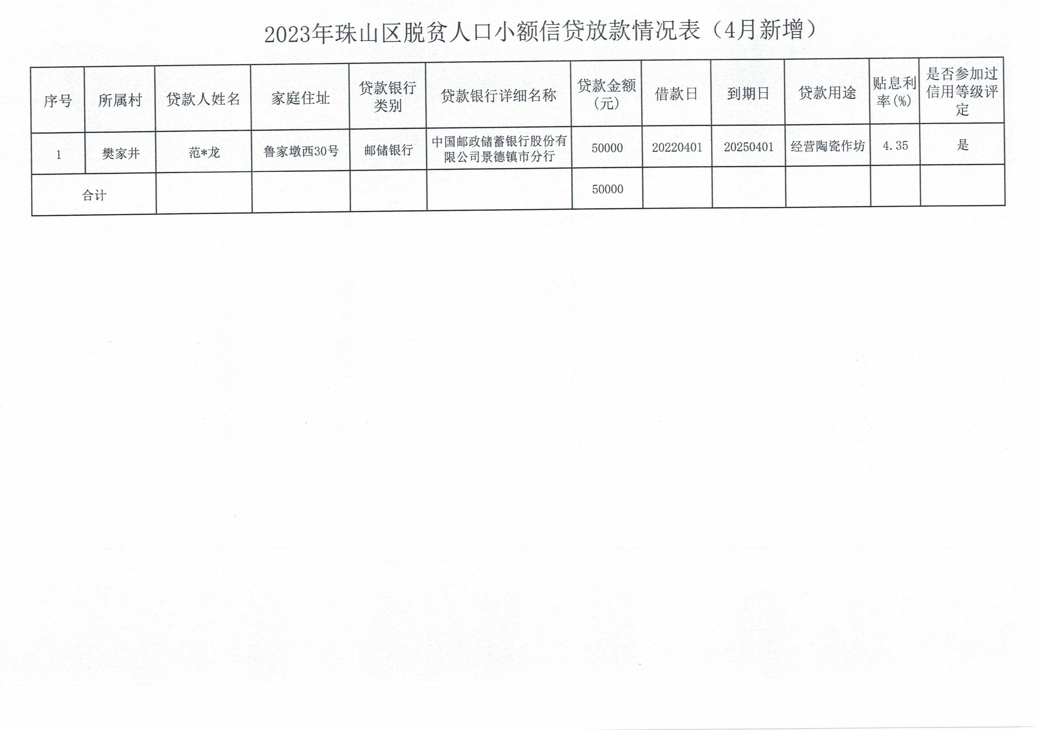 2022年珠山区脱贫人口小额信贷放款情况表(4月新增)