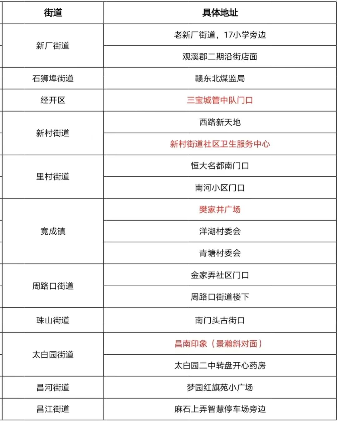 自12月7日开始,标红的4个点位(采样亭)上班时间为上午8:00-11:00,下午14:30—17:00;其他点位(临时帐篷)均为上午8:00-11:00。