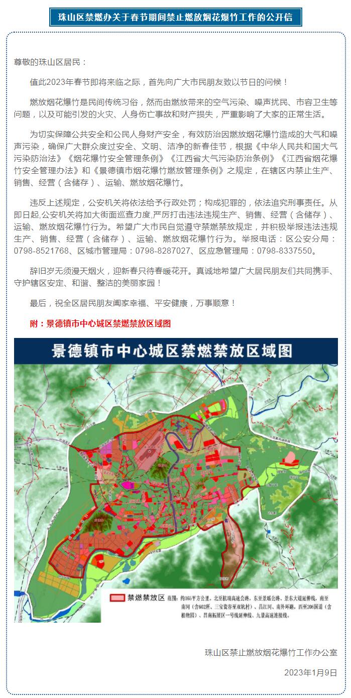 珠山区禁燃办关于春节期间禁止燃放烟花爆竹工作的公开信