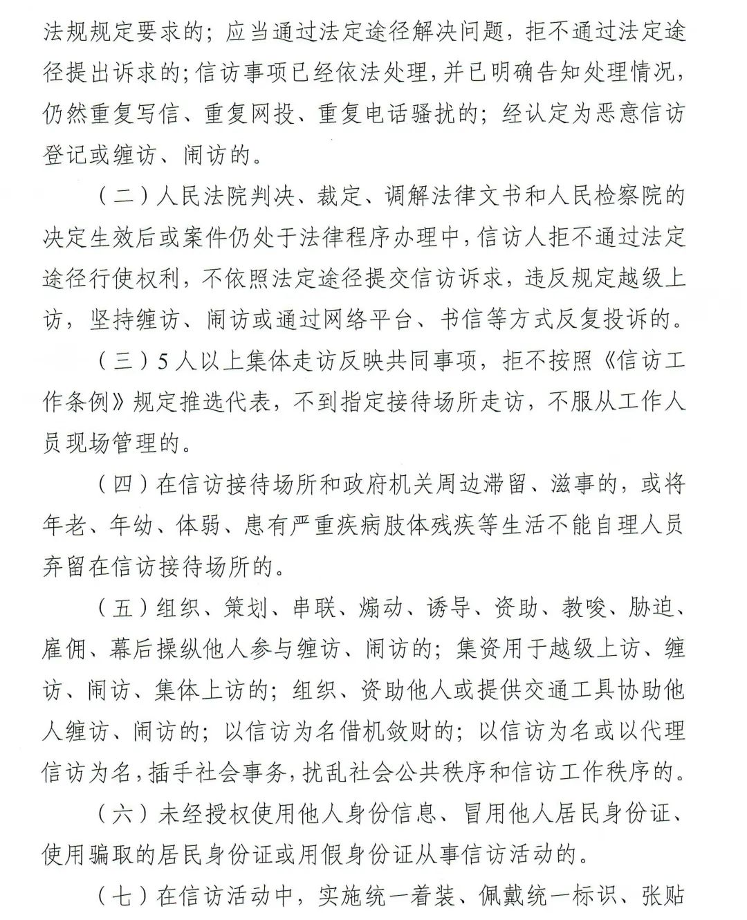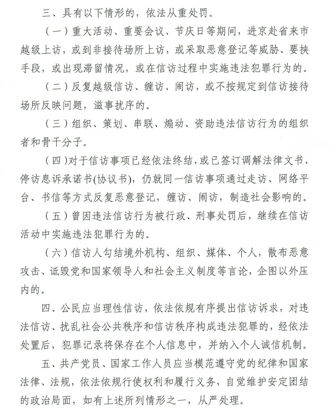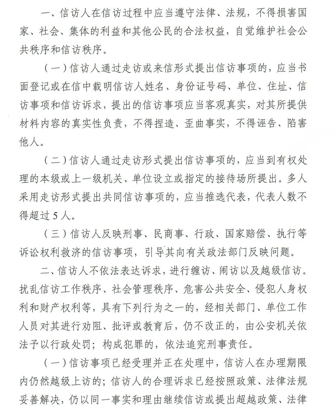 【权威发布】关于依法处置违法信访行为规范信访秩序的通告