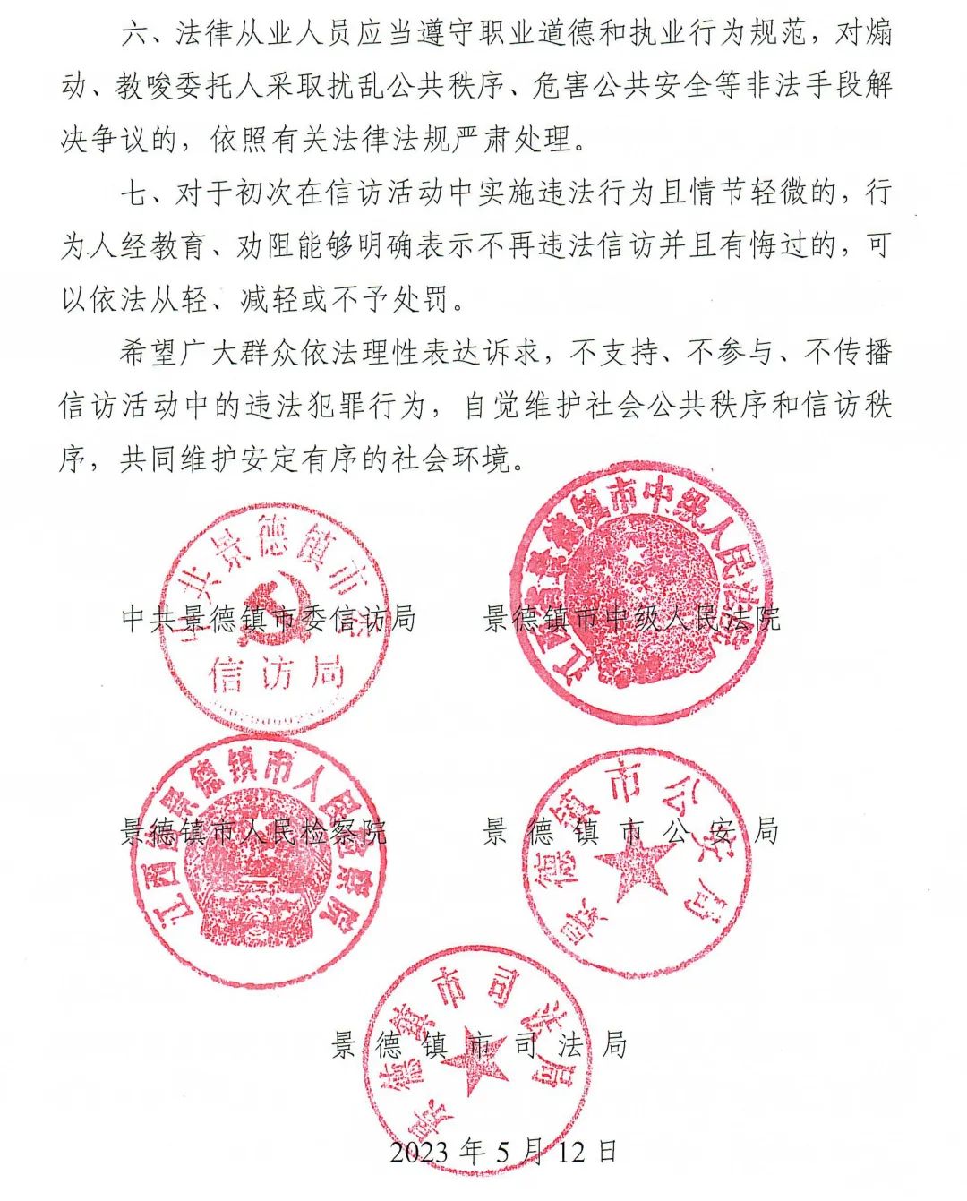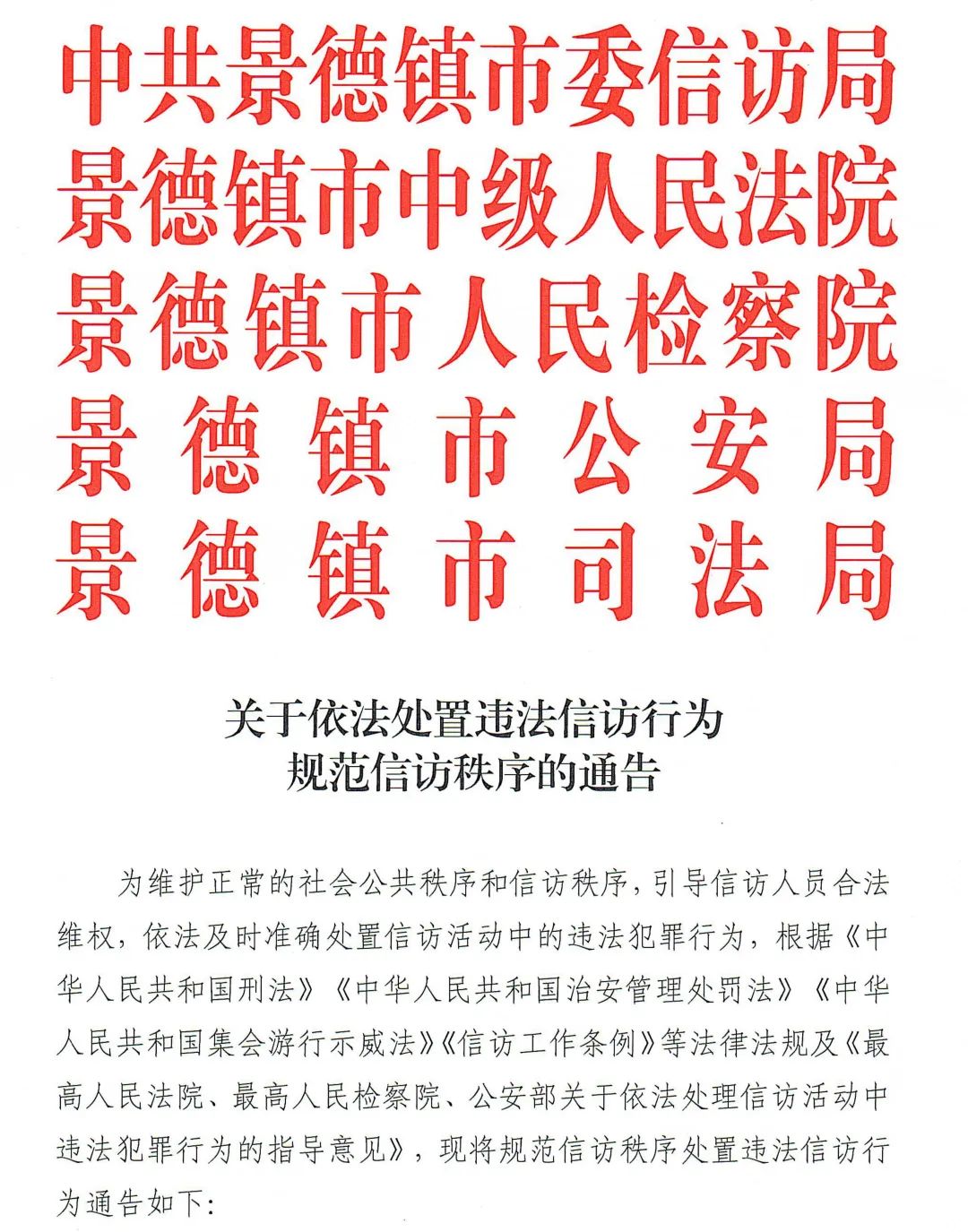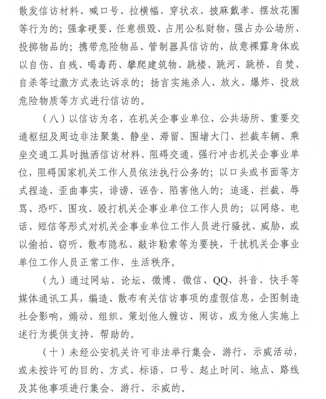 【权威发布】关于依法处置违法信访行为规范信访秩序的通告