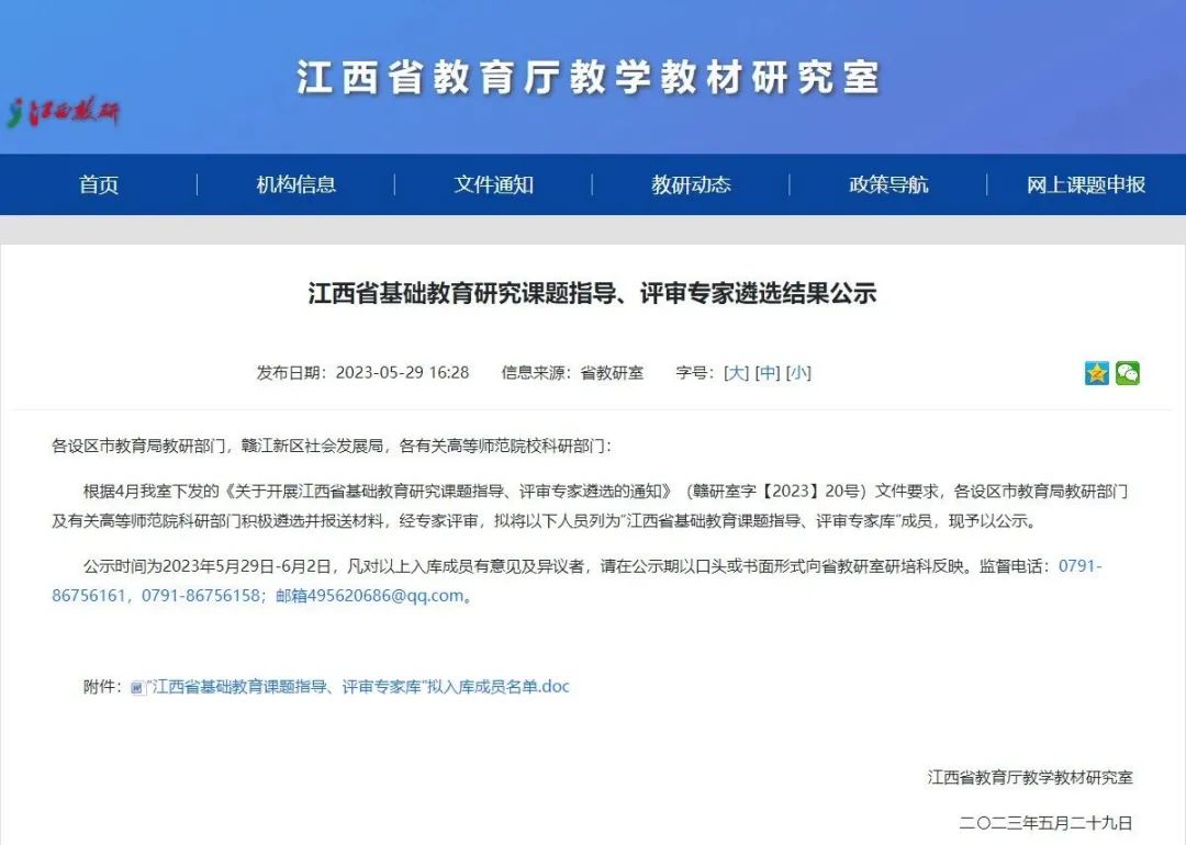 省教研室公示江西省基础教育研究课题指导、评审专家遴选结果194人拟列为“江西省基础教育课题指导、评审专家库”成员