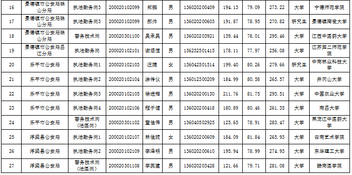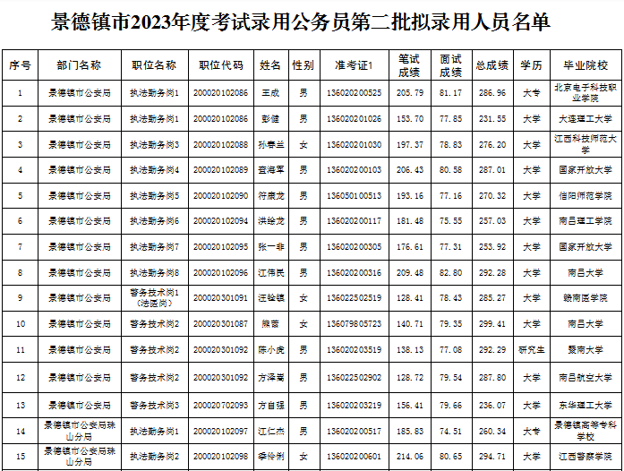 附:景德镇市2023年度考试录用公务员第二批拟录用人员名单