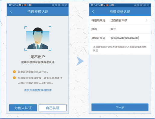 第五步:按照提示完成人脸识别认证。认证成功后可在“待遇领取资格认证记录查询”查看认证结果。