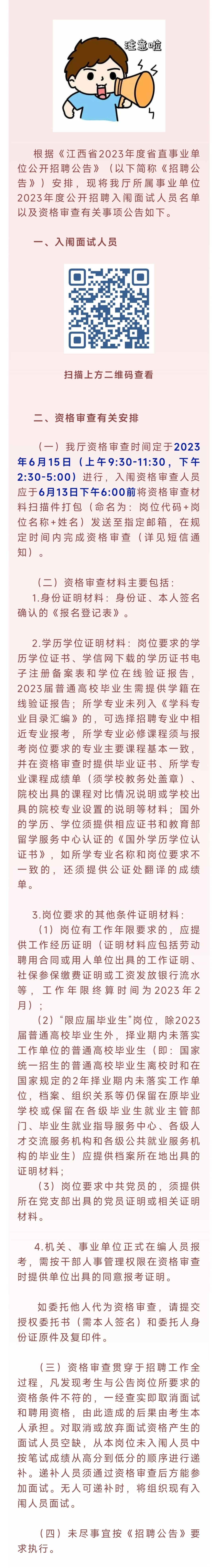 江西省人力资源和社会保障厅所属事业单位2023年度公开招聘入闱面试人员名单及资格审查公告