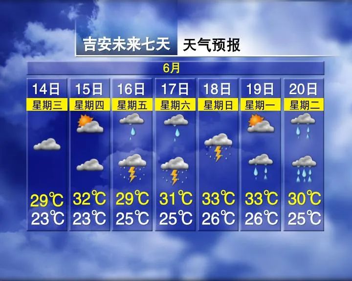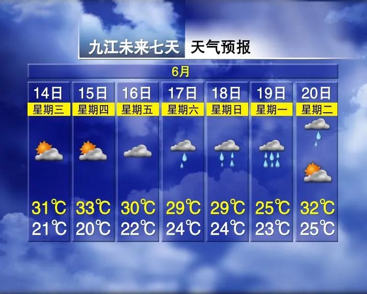 赣南阴天间多云有阵雨或雷阵雨,赣中多云,局部地区有阵雨,赣北晴天间多云。