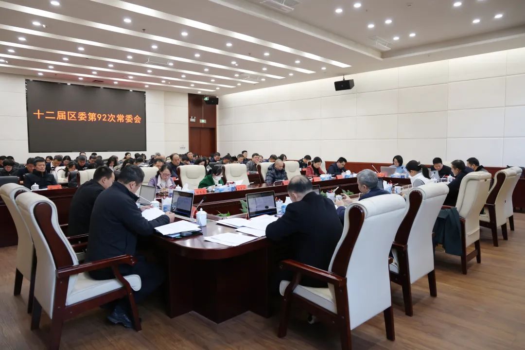近日,十二届区委第92次常委会会议召开。区委书记徐华主持会议并讲话,区委副书记、区长刘海,区领导余文军、张志刚、杜钧瑞、董玉成、江斌、王昊、徐锐出席会议。