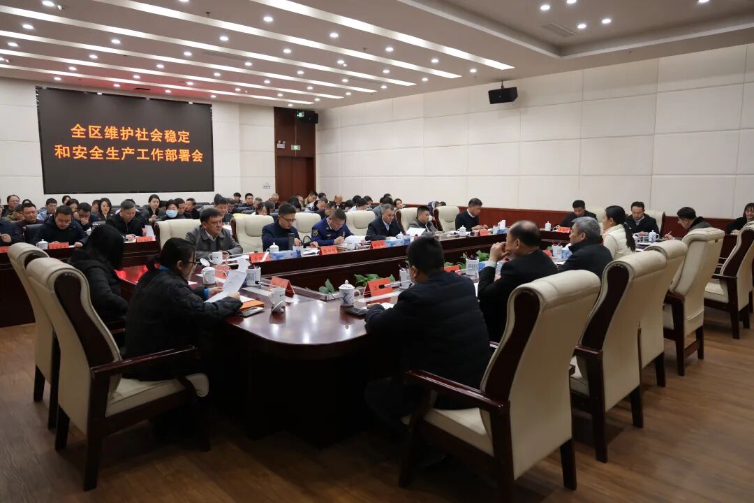 徐华指出,稳定压倒一切,安全重于泰山。全区上下要深入贯彻落实习近平总书记关于安全生产的重要论述和重要指示精神,坚决按照省、市部署要求,切实增强做好安全稳定工作的思想自觉、政治自觉、行动自觉,坚决克服麻痹心理、侥幸心理,扎实做好维护社会稳定和安全生产各项工作,全力以赴防风险、保安全、护稳定,确保人民群众生命财产安全和社会大局和谐稳定,为经济社会高质量发展提供坚强安全保障。