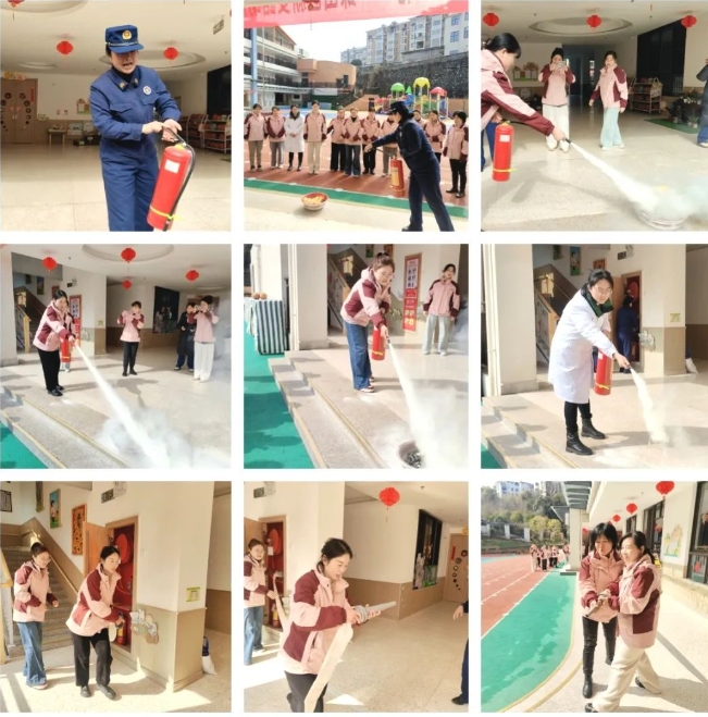 随后,珠山消防救援大队指导员为教职工开展消防安全实操培训。讲解过程中,指导员对灭火器、消防栓的使用方法进行了细致阐述。大家沉浸式体验操作流程,动作规范标准,将安全知识牢记于心。