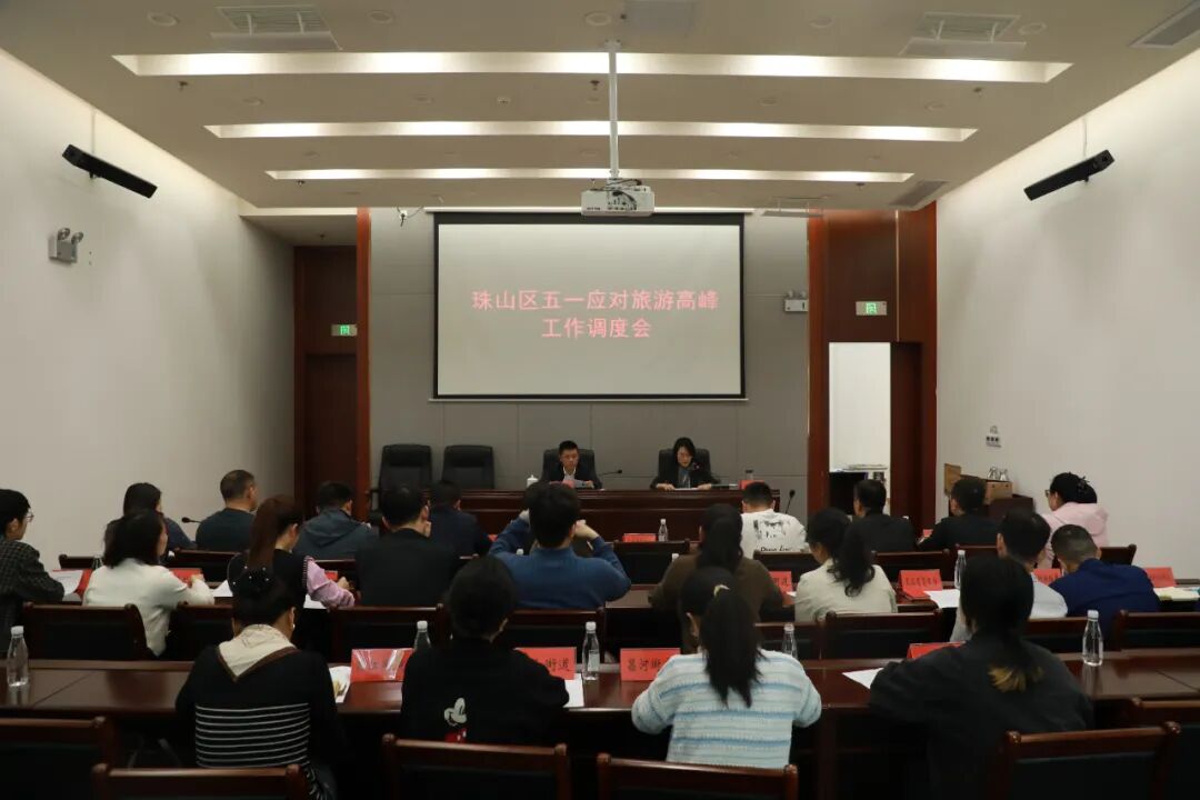 4月25日上午,珠山区召开五一假期旅游高峰工作调度会,全面部署假期旅游服务保障及安全生产工作。区政府副区长王锋胜出席会议并讲话,区应对旅游高峰工作专班相关成员单位参加会议。