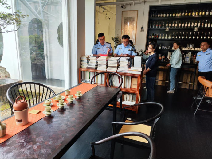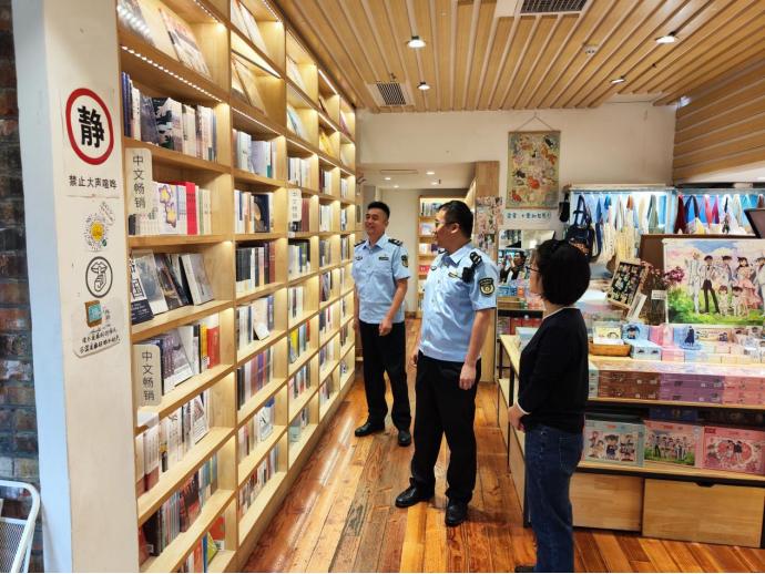 检查组一行来到陶溪川文创街区,对景区内的书店进行检查。此次行动重点检查《出版物经营许可证》和《营业执照》登载的有关信息是否一致,进销货清单是否齐全,有无超范围经营,有无销售非法出版物等情况。检查过程中,执法人员还向书店负责人及工作人员普及“扫黄打非”、版权保护等政策知识。