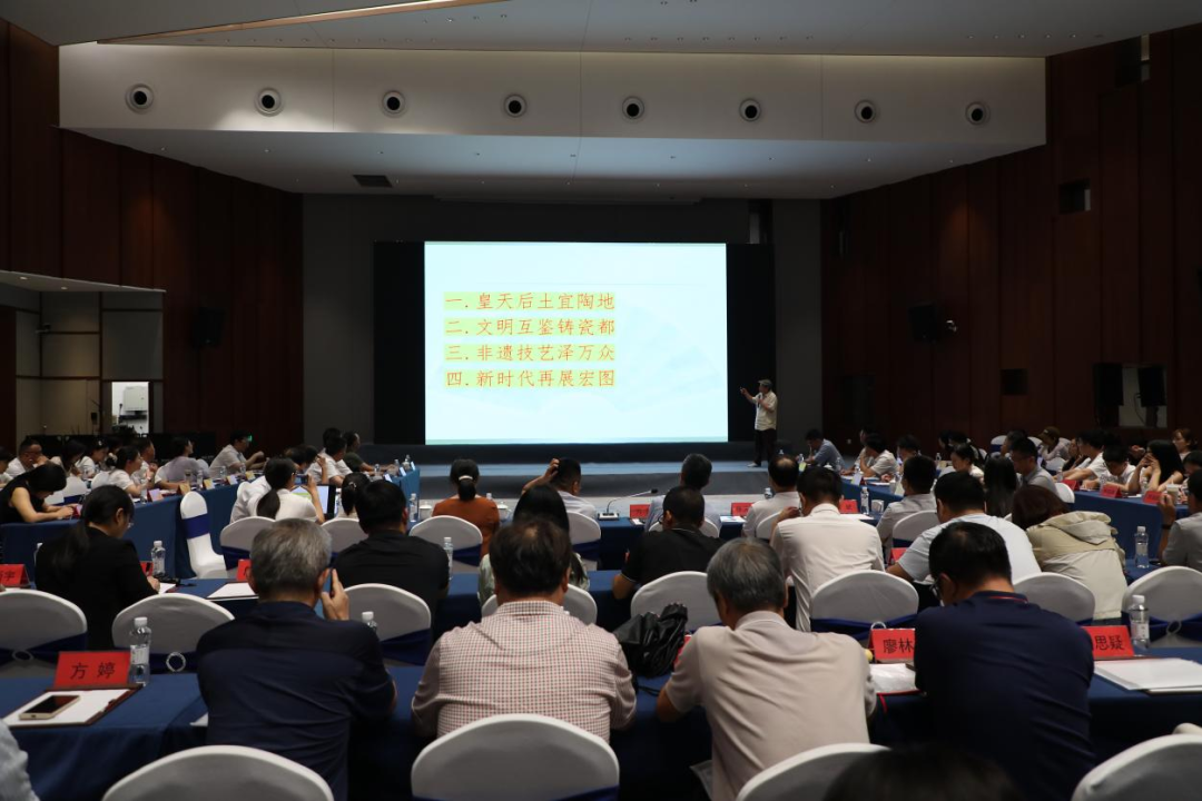 景德镇市地名学研究会会长白光华以《景德镇瓷都地位的成就历程简述——以景德镇申遗要素为例》为题,系统梳理千年瓷都历史脉络,深刻阐释申遗工作的重大意义及文化遗产保护传承的重要性。