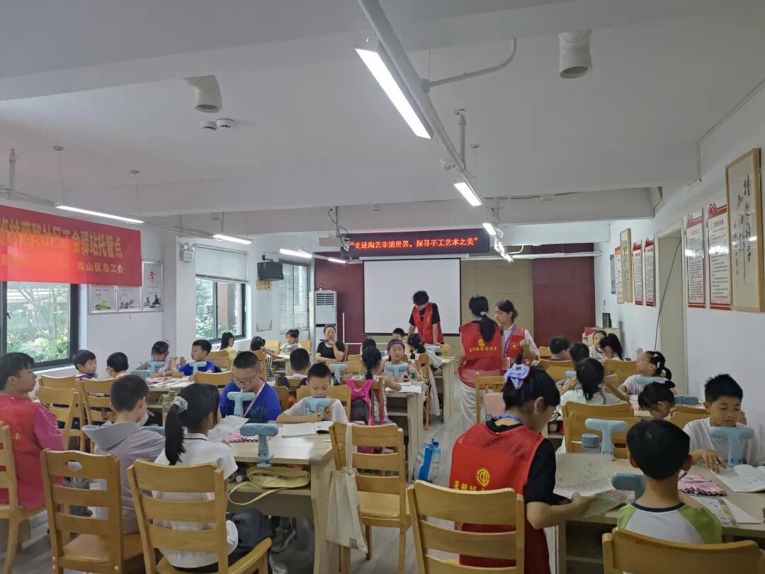 依托辖区工会驿站,联合社区、志愿者资源,开设普惠性托管班,为双职工家庭提供就近看护服务。课程涵盖课业辅导、科普实验、陶瓷非遗等,让孩子们在安全、快乐的环境中成长。