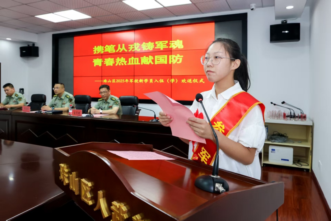 仪式在激昂的《中国人民解放军军歌》旋律中落下帷幕。军歌奏响新征程的号角,标志着珠山区这批军校新学员正式踏上保家卫国的光荣之路。据悉,这批青年学子将分别进入多所军队院校深造,未来他们将以青春之我投身强军兴军伟大实践,为国防事业注入青春力量,书写新时代军人的壮丽篇章